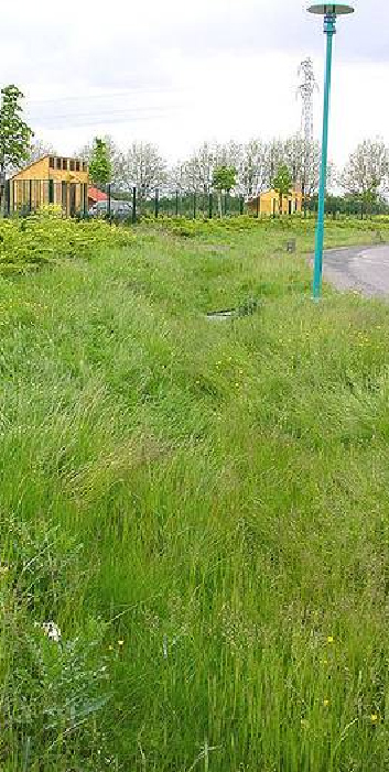 Le petit bassin d’orage sous les terrains de pétanque au bas de l’avenue de la Chênaie est du premier type ; c’est une structure alvéolaire recouverte d’un voile imperméable et de terres.